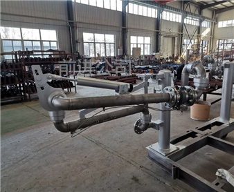 *典型的槽車(chē)底部裝卸鶴管,與槽車(chē)用快速接頭或者法蘭聯(lián)接,采用五個(gè)旋轉(zhuǎn)接頭。介質(zhì)由槽車(chē)卸油口經(jīng)鶴管自上而下流入管線內(nèi),采用重力作用下的自流方式就可卸車(chē),接口高度較高時(shí)